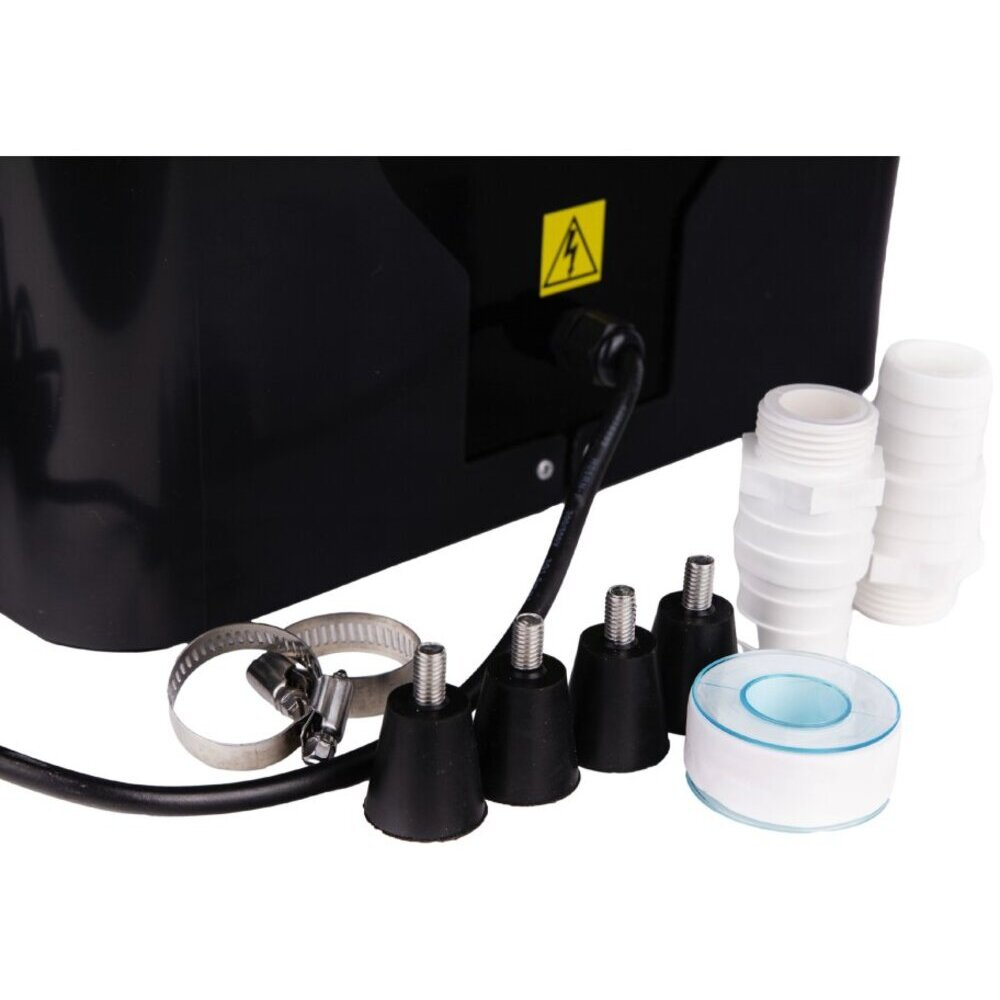 Die Pumpe verwendet das moderne , umweltfreundliche Kältemittel R32 und ist komplett gebrauchsfertig. Schließen Sie einfach die ø38/32 mm Schläuche mit den mitgelieferten Anschlüssen an. In der Verpackung finden Sie alles, was Sie brauchen, einschließlich Dämpfungsfüße und Anleitung. Die Stromversorgung erfordert 220-240 V/50 Hz und das Gewicht beträgt 20 kg.