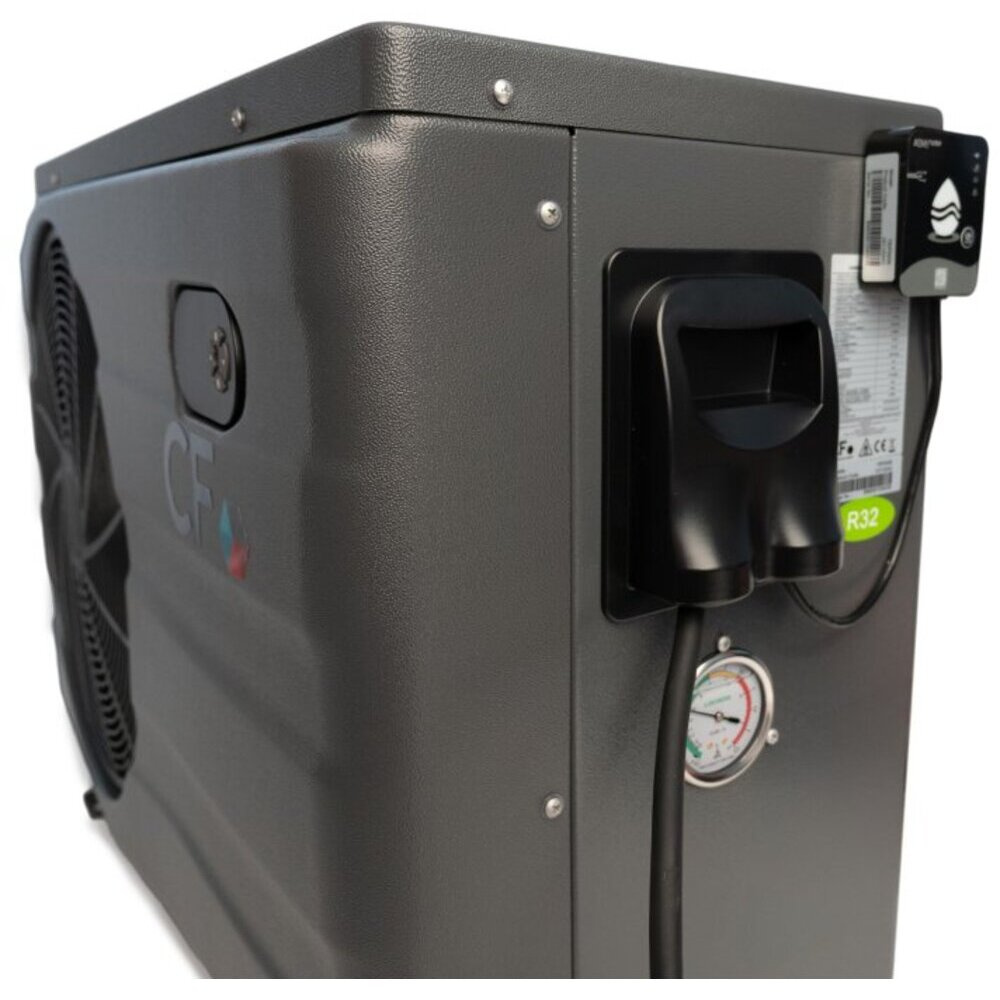 Mit einem Geräuschpegel von 42-53 dB ist die CF PROFI Invertor 12kW eine der leisesten Wärmepumpen auf dem Markt - ein Geräuschpegel, der dem eines Flüstergeräts und eines herkömmlichen Kühlschranks entspricht. Das Gerät bietet sowohl einen Heiz- als auch einen Kühlmodus für das Poolwasser, was Sie an heißen Sommertagen zu schätzen wissen werden. Die Steuerung erfolgt über ein übersichtliches LED-Display oder die Aqua Temp Mobile App. Sie verwendet das umweltfreundliche Kältemittel R32, und die automatische Abtaufunktion des Verdampfers erhöht die Effizienz auch bei niedrigeren Temperaturen. Die Wärmepumpe ist mit Anschlüssen für die Steuerung einer externen Pumpe mit bis zu 6 A ausgestattet.