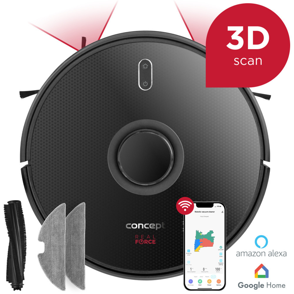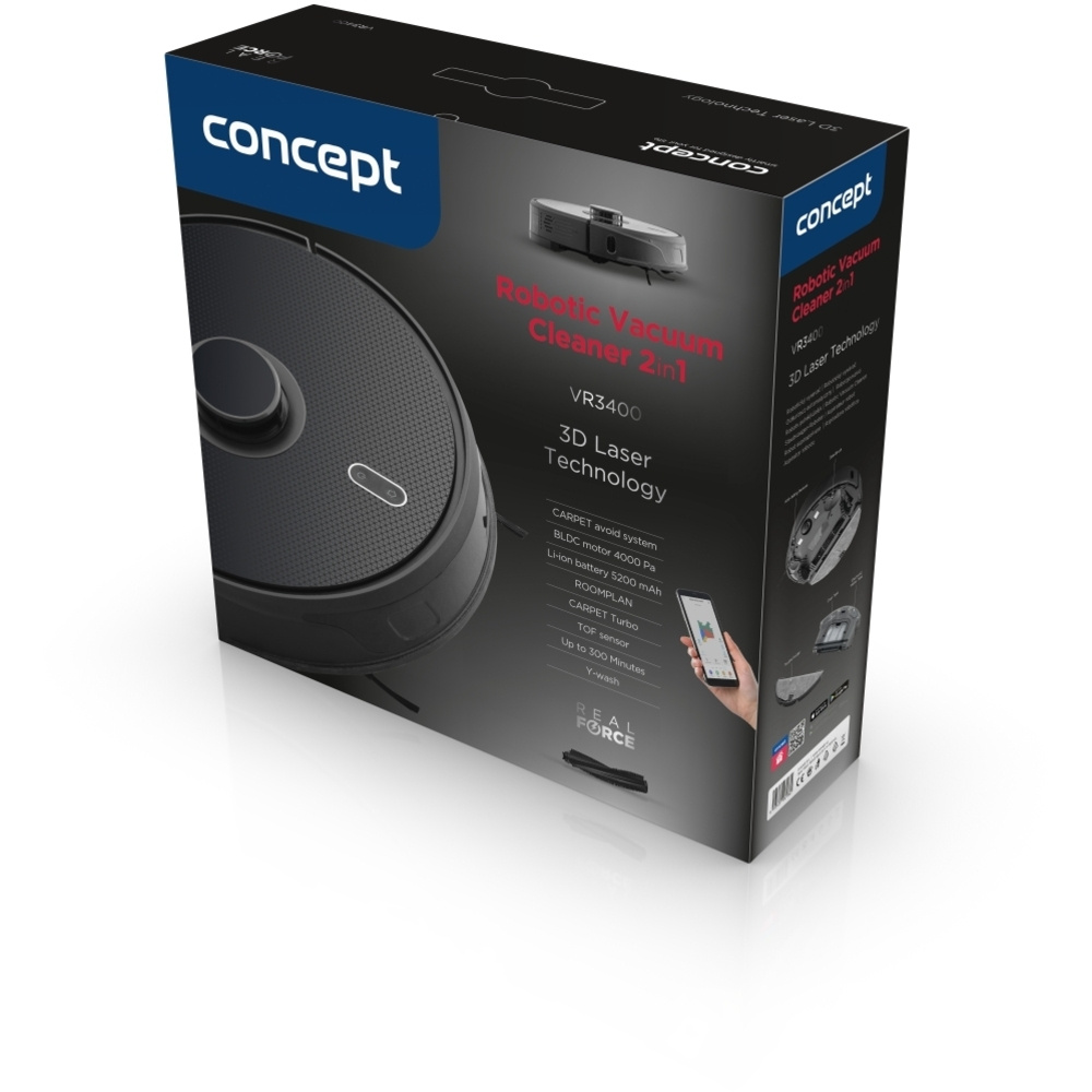 Der Concept VR3400 Staubsaugerroboter verfügt über eine hochmoderne 3D-Technologie mit dreidimensionaler Objekterkennung. Er kann selbst kleine Objekte mit einer Höhe von nur 2 cm in Echtzeit erkennen und die Reinigungsroute entsprechend anpassen. So bleiben Sie nicht bei der Reinigung einer vergessenen Socke, eines verhedderten Vorhangs oder des Wassernapfs Ihres Haustiers hängen. Er erkennt die häufigsten Gegenstände auf dem Boden - Hausschuhe, Socken, Schüsseln, Spielzeug, Taschentücher, Bücher, Kleidung, Decken und Vorhänge, die den Boden berühren.