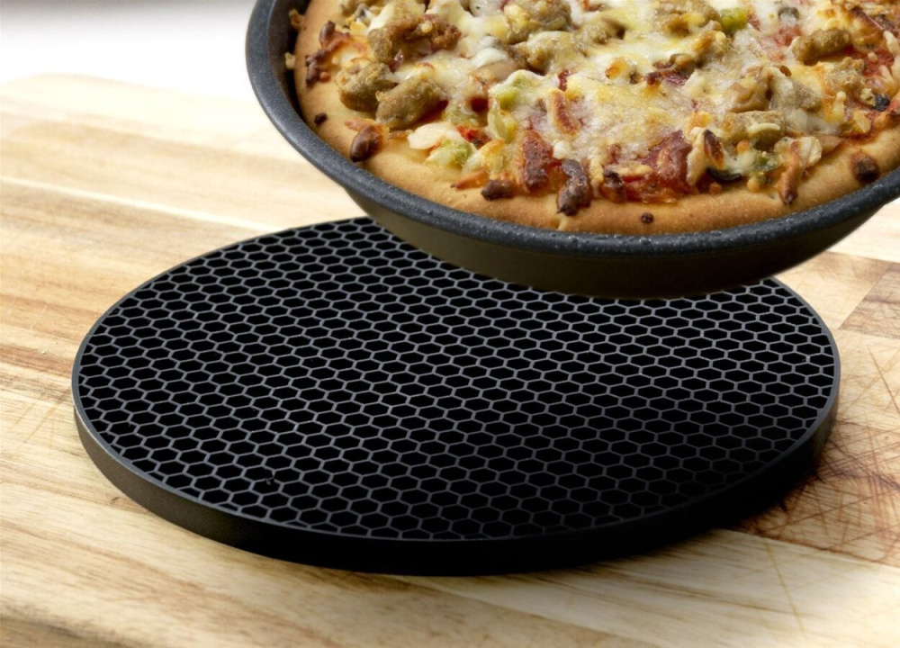 Im Cosori Zubehörset finden Sie auch eine praktische Silikonmatte, die perfekt zu allen Backblechen passt. Beim Herausnehmen der heißen Formen aus der Heißluftfritteuse kann die Matte zum Schutz der Küchenarbeitsplatte verwendet werden.