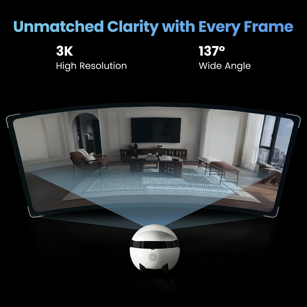 Eingebettet 3K-Kamera mit Auflösung 2880 x 1620 liefert ein außergewöhnlich detailliertes Bild, das von subtilen Bewegungen bis hin zu Gesichtsausdrücken alles einfängt. Weitwinkelobjektiv 137° sorgt dafür, dass Ihnen nichts entgeht, auch wenn Sie einen größeren Raum betrachten. Intelligente AI-Verfolgung kann Bewegungen erkennen, automatisch fokussieren und ein Video oder Foto aufnehmen. In Kombination mit der flüssigen Bewegung der Kamera bietet EBO Air 2 Plus einen völlig neuen Standard in der Hausüberwachung. Jedes Video (in MP4) und Fotografien (JPG) sind gestochen scharf, realistisch und ideal für die sofortige Übertragung oder spätere Wiedergabe auf dem integrierten 32GB microSD-Kartedie bis zu folgenden Werten erweitert werden kann 256 GB.
