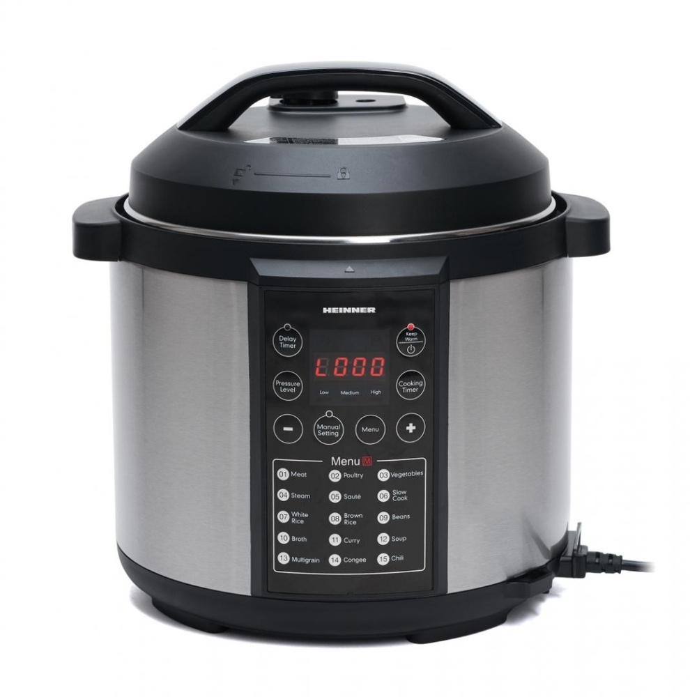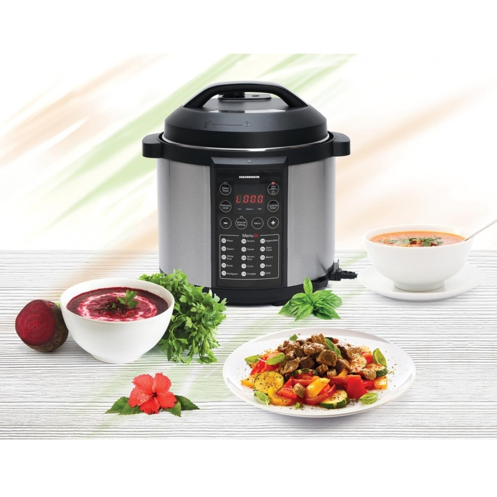 Schluss mit mühsamem Kochen und stundenlangem Herumstehen in der Küche! Mit dem HEINNER HPCK-6IX Multifunktions-Schnellkochtopf können Sie mühelos jede Mahlzeit zubereiten, auf die Sie Lust haben. Beim Schnellkochen bleiben die Nährstoffe und Aromen der Zutaten erhalten, während die Kochzeit im Vergleich zu einem herkömmlichen Herd deutlich verkürzt wird.