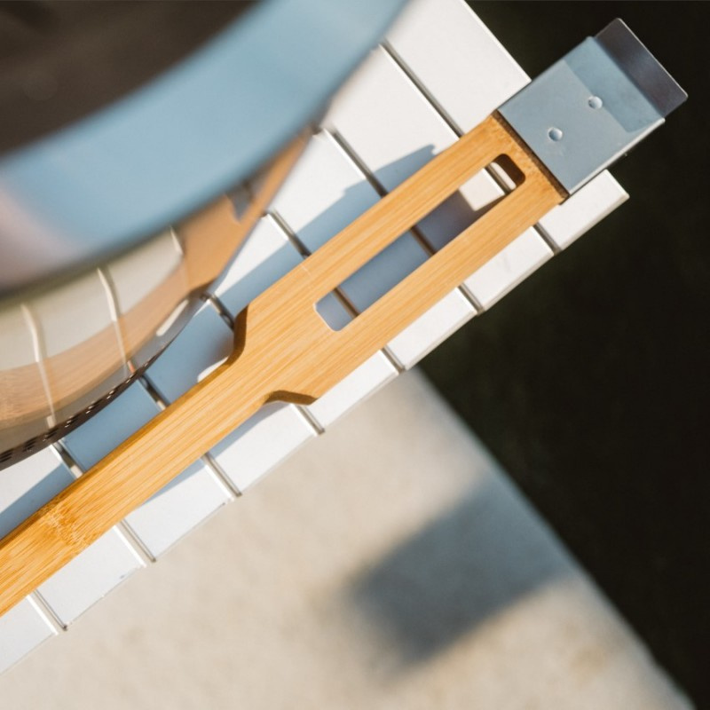 Solo Stove Edelstahl-Borstenbürste für die perfekte Pflege von Keramik-Pizzasteinen. Entfernt effektiv verbrannte Essensreste. Der Edelstahlschaber auf der anderen Seite der Bürste ist dann perfekt für die Entfernung größerer verbrannter Rückstände. Der lange Holzgriff liegt gut in der Hand. Praktisches Band zum Aufhängen.