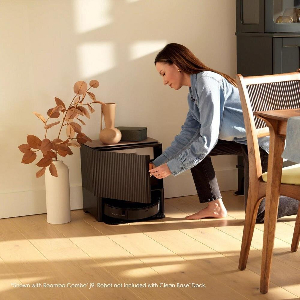 Die Clean Base® AutoFill-Lade- und Reinigungsstation bietet eine komplette Pflege für Ihren Roomba Combo®-Roboterstaubsauger . Während dieser Zeit müssen Sie sich nicht um Ihren Roboter kümmern.