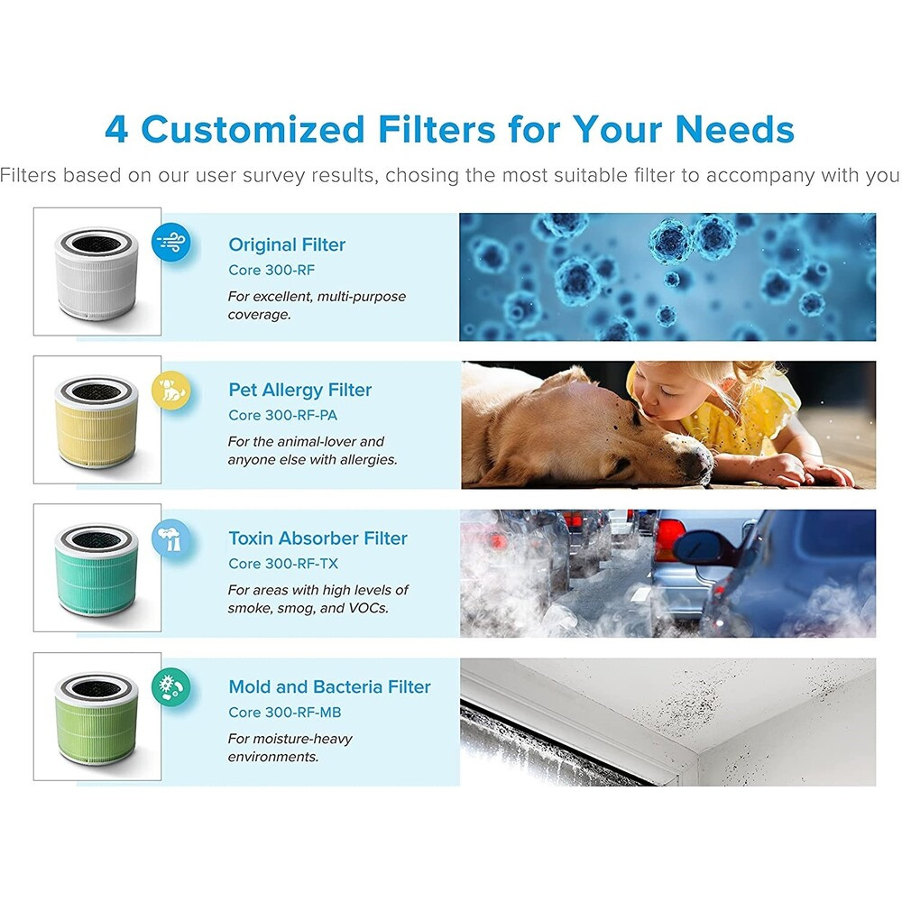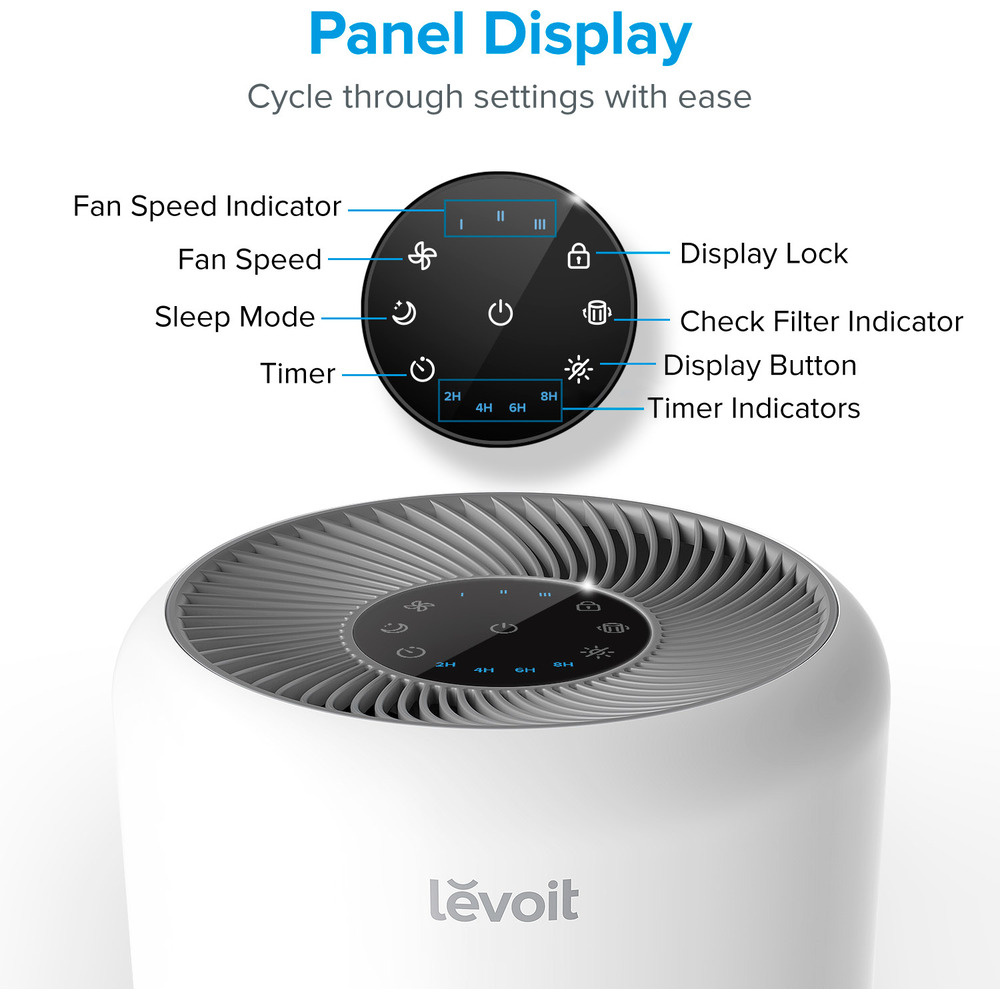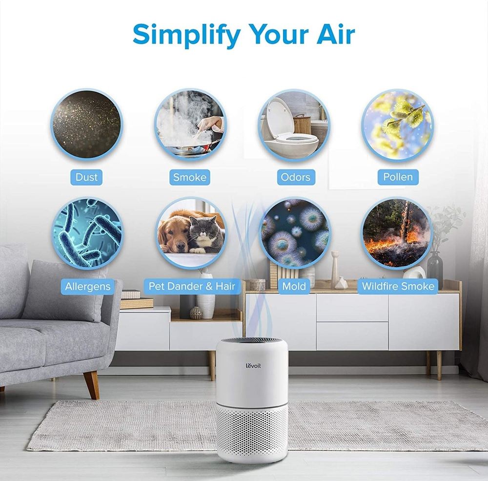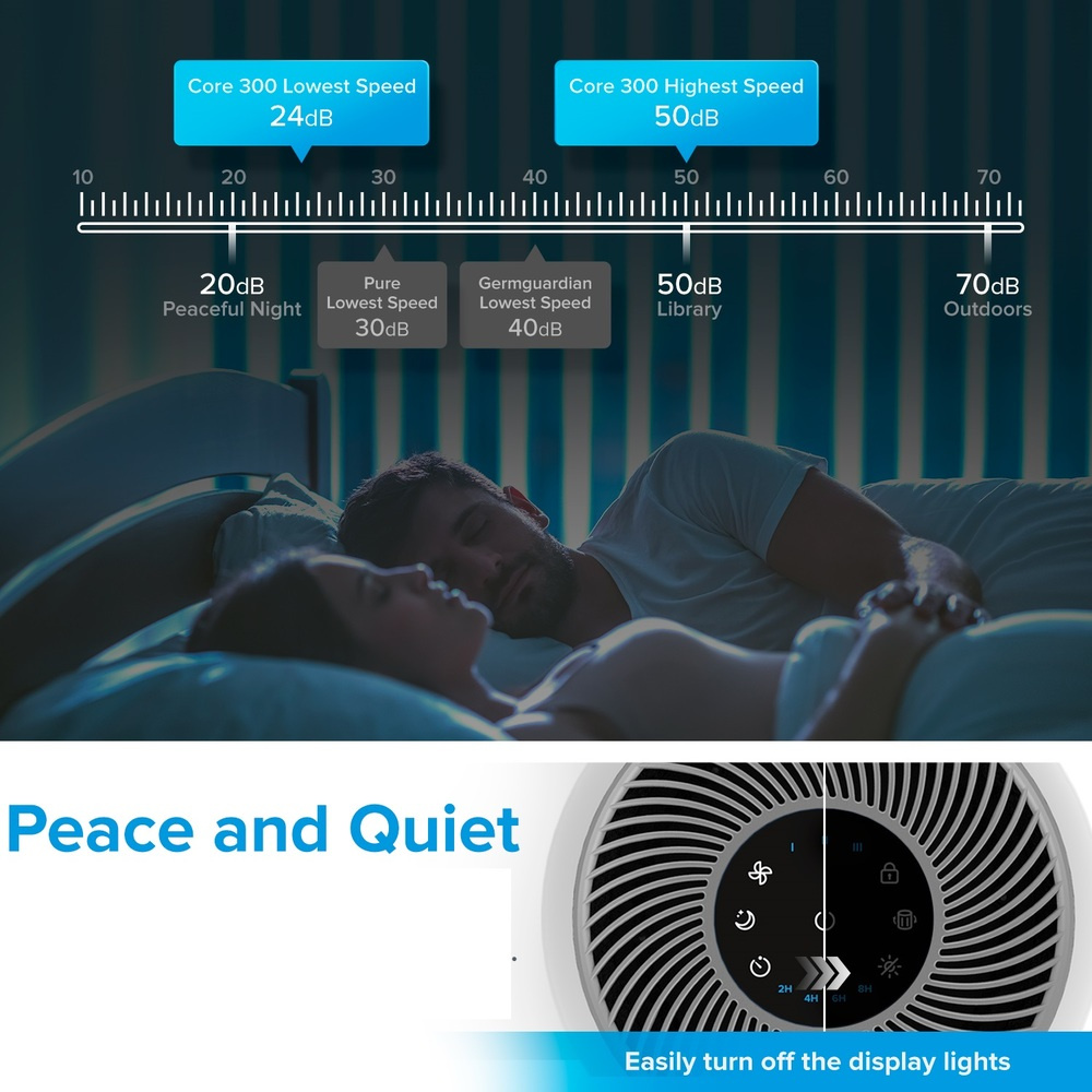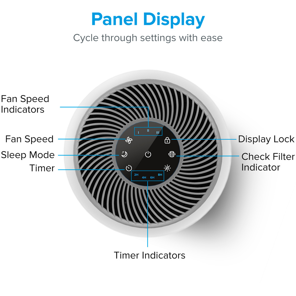 Der Luftreiniger bietet eine fortschrittliche dreistufige Luftfiltration, beginnend mit einem Nylon-Außenfilter, der groben Schmutz zurückhält. Darauf folgt ein HEPA-Filter mit ARC™-Formel, der feine Staubpartikel, Schimmel, Bakterien, Pollen und Hausstaubmilben herausfiltert. Die letzte Schicht ist ein hochwirksamer Kohlefilter, der Rauch, Gerüche und Dämpfe bis zu einer Größe von 0,3 Mikrometern mit einer Effizienz von 99,97 Prozent entfernt.