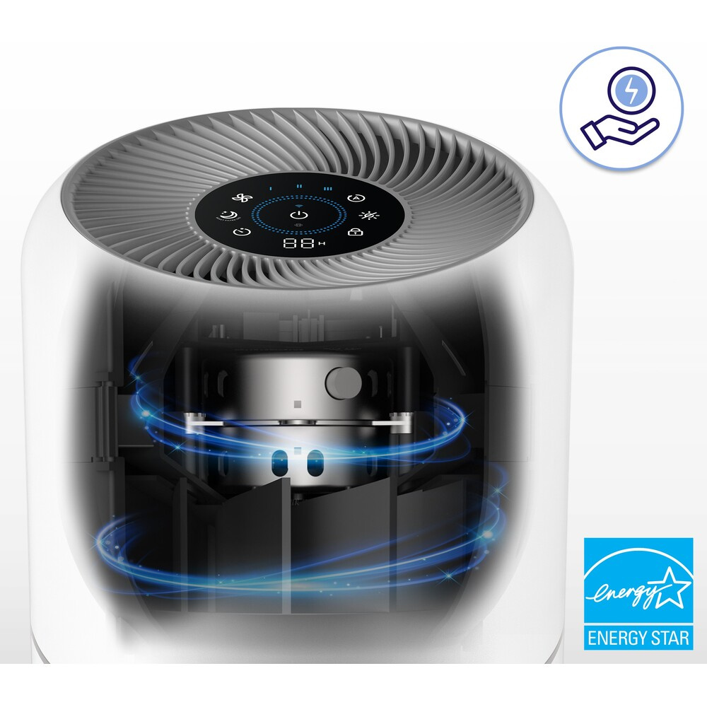 Die fortschrittliche AirSight PLUS-Technologie verwendet einen speziellen Staub-Lasersensor, der Verschmutzungen mit bis zu dreimal kleineren Partikeln erkennen kann als herkömmliche Infrarotsensoren. Das System unterscheidet zwischen vier Stufen der Luftreinheit mit Farbanzeige von blau für ausgezeichnete Qualität bis rot für Verschmutzung. Im Automatikmodus aktiviert sich das Gerät selbst und passt die Betriebsintensität an die aktuellen Luftbedingungen an, um eine schnellstmögliche Reinigung des Raums zu gewährleisten.