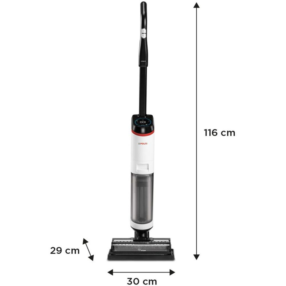Die Bodenspülmaschine Polti ROLLYSTEAM WD30C ist eine revolutionäre Lösung für den modernen Haushalt. Dieses Gerät saugt, reinigt und desinfiziert mit Dampf in einem einzigen Schritt und spart Ihnen so Zeit und Mühe. Dank der SteamActive™-Technologie entfernt es bis zu 99,999 % der Bakterien, Keime und Schimmelpilze ganz ohne den Gebraucht von Chemikalien. Die ideale Wahl für Familien mit Kindern, Allergiker und Haustierbesitzer, die eine umweltfreundliche und effiziente Art der Reinigung suchen.