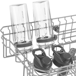 Im Paket finden Sie zwei Sportflaschen mit einem Volumen von 0,6 Litern aus amerikanischem Tritan von Eastman. Das Material ist BPA-frei, stoßfest und spülmaschinenfest. Die Flaschen dichten perfekt ab und passen auf den Fahrradträger und ins Auto. Die rutschfesten Saugnäpfe und der integrierte Sicherheitsmechanismus garantieren Stabilität während des gesamten Mischvorgangs.