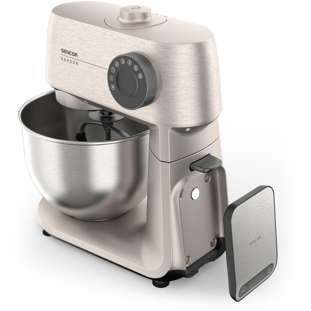 Die STM 7651WS Küchenmaschine ist eine hochmoderne Kombination aus moderner Technologie und praktischem Design. Die einzigartige abnehmbare intelligente Waage in Kombination mit der Sencor FOOD App ermöglicht das präzise Abmessen von Zutaten direkt in der Schüssel des Roboters oder einem anderen Behälter. Die App bietet Zugriff auf eine umfangreiche Rezeptdatenbank und ermöglicht es Ihnen, die Nährwerte der zubereiteten Gerichte zu überwachen. Dieser intelligente Helfer macht das tägliche Kochen zu einem angenehmen Erlebnis.