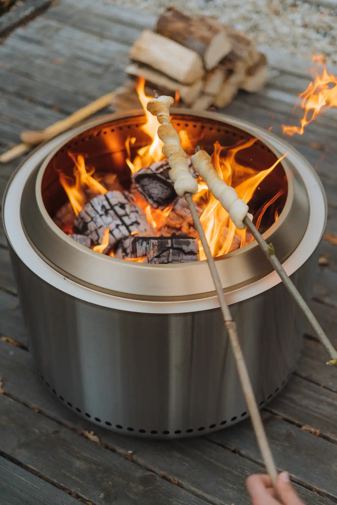 Solo Stove Yukon Rauchfreie Feuerstelle mit Sockel ist die ideale Wahl für ein gemütliches Sitzen am Feuer, zum Braten von Würstchen und anderen Speisen. Es ist die größte Feuerstelle im Solo Stove Sortiment, wiegt 20 kg und ist tragbardas macht ihn zu einem großartigen Begleiter für Reisen, Camping oder Wochenendausflüge, ideal für bis zu 12 Personen.