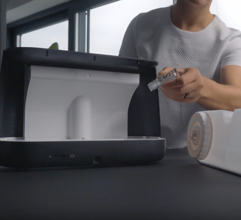 Versilberter Desinfektionsmittelwürfel Der Wasserwürfel gewährleistet eine hygienische Befeuchtung ohne Bakterienwachstum. Wenn Ihr Wasser zu hart ist, empfehlen wir den Kauf von kartusche zur Reduzierung von Kalkablagerungen Anticalc-Patrone. So wird sichergestellt, dass keine Spuren auf den Möbeln rund um den Ben-Luftbefeuchter hinterlassen werden.