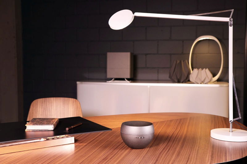 Mit seinen kompakten Abmessungen, seinem eleganten Design und seiner gummierten Oberfläche gibt es keinen Raum, in den Jasmine nicht passt. Sie können sie auf einer Fensterbank, einem Bücherregal, einem Tisch oder sogar im Badezimmer aufstellen.