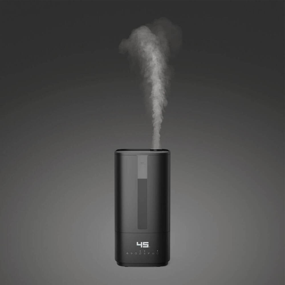 Dank seiner hohen Leistung kann der Luftbefeuchter Oliver bis zu 420 g Wasser pro Stunde entnehmen. Er eignet sich auch für größere Räume bis zu 60m2 und ermöglicht Ihnen die Wahl zwischen sechs Befeuchtungsleistungsstufen. Wenn Sie die maximale Leistung wählen, steigt der Dampf des Oliver bis zu einem Meter hoch.