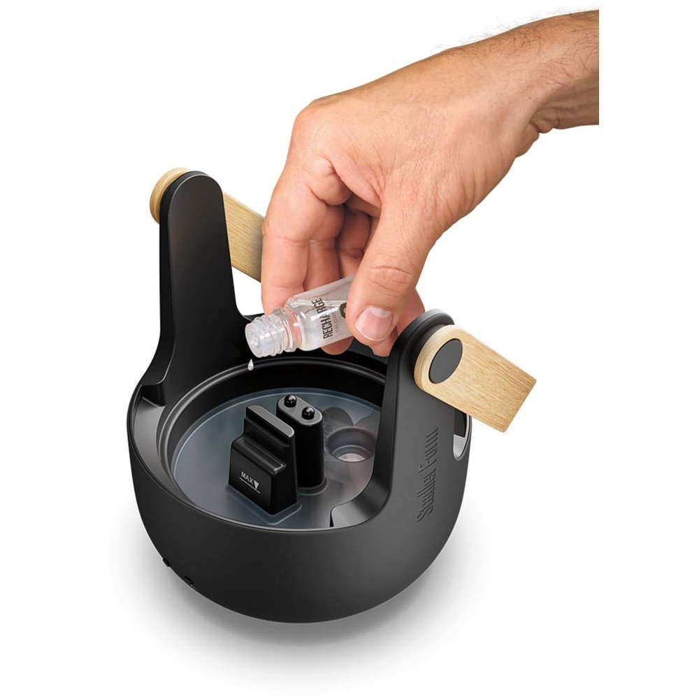 Wasser, gemischt mit einigen Tropfen ätherischer Öle, wird durch die Ultraschalltechnologie von Sophie Little in einen extrem feinen Duftregen verwandelt. Er verteilt ihn auf der Terrasse, dem Balkon oder im Wohnzimmer. Dies ist die sanfteste und effektivste Art, den Duft von ätherischen Ölen zu verbreiten.