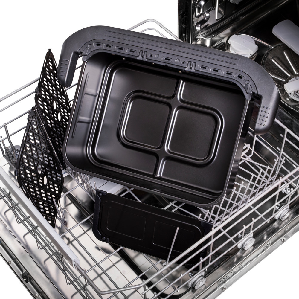 Mit der Funktion Sync Cook können Sie für beide Kochzonen gleichzeitig dieselbe Temperatur und Heizzeit einstellen, während Sync Finish verschiedene Programme aufeinander abstimmt, damit die Gerichte zur selben Zeit fertig werden. Eine praktische Vorheizfunktion warnt Sie, wenn die ideale Temperatur erreicht ist, und ein akustisches Signal erinnert Sie während des Kochens an die richtige Zeit zum Schütteln oder Wenden der Zutaten, um ein gleichmäßiges Ergebnis zu erzielen.