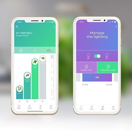 Véritable Connect ist das fortschrittlichste Modell des in Frankreich hergestellten Hausgartens, das mit wenigen Klicks über die mobile App gesteuert werden kann, um die Ernte zu optimieren. Diese intelligente, vernetzte Pflanzmaschine vereint alle Vorteile der Modelle Classic und Smart mit zusätzlicher Konnektivität über Bluetooth. Mit der kostenlosen App, die sowohl für iOS als auch für Android verfügbar ist, können Sie die Entwicklung der Pflanzen überwachen, den Beleuchtungsmodus einstellen und Benachrichtigungen erhalten, wenn der Tank leer ist. Die ideale Lösung für moderne Haushalte, die eine maximale Kontrolle über ihren Anbau wünschen.