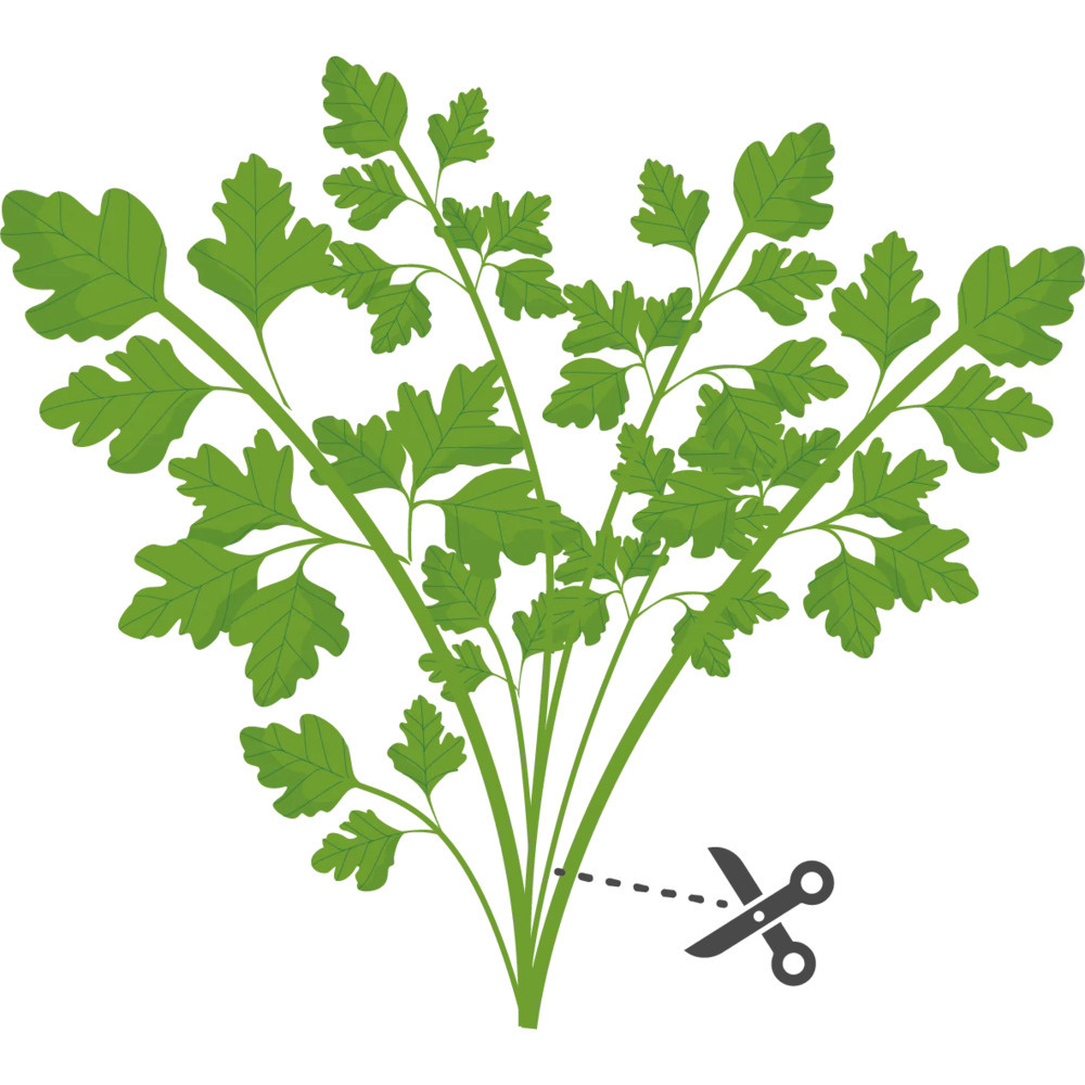 Die Mitsuba-Petersilie ist eine mehrjährige Pflanze, die das ganze Jahr über Blätter bildet. Die Blätter können mit einer Schere von der Basis der Pflanze geerntet werden oder man schneidet sie vorsichtig ab, um den Hauptstamm nicht zu beschädigen. Frische Blätter können geerntet werden, wenn die Pflanze ausreichend gewachsen ist, in der Regel wenn die Blätter groß und gut geformt sind.