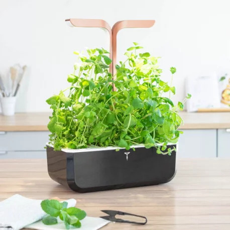 Nach 3 Wochen erscheinen kleine Blätter in einer buschigen, kriechenden Form. Warten Sie 4 bis 8 Wochen (ca. 20 bis 25 cm), bis die gezackten, spitzen Blätter erscheinen, und ernten Sie dann.