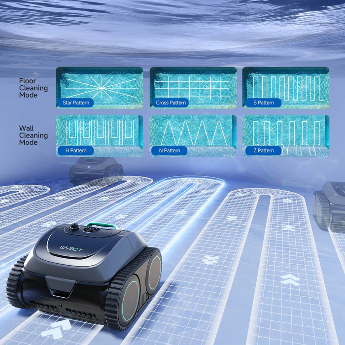 Dank der kabellosen Bedienung und der intelligenten Navigation mit zwei Routen (S-Pfad und N-Pfad) übernimmt der WYBOT C1 die komplette Wasserpflege für Sie. Ein einziger Start und der Sauger beginnt mit der systematischen Reinigung des gesamten Schwimmbeckens - schnell und effizient. Das verbesserte Modell 2026 mit Freesuction 3.0 Technologie sorgt für eine gezielte Bewegung ohne unnötige Überfahrten und eine gründliche Reinigung von Boden, Wänden, Wasserlinie und Stufen.